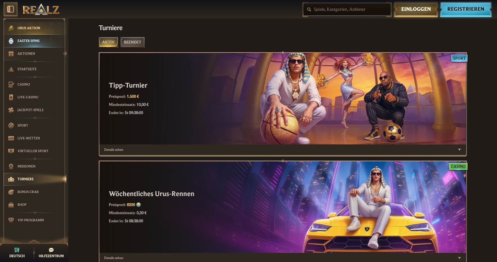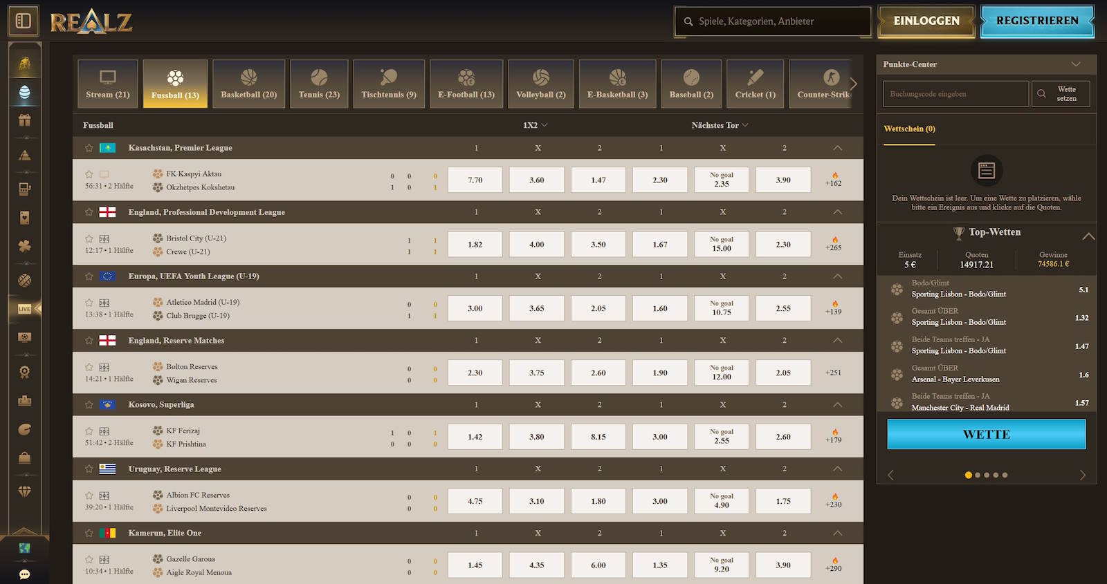 Jackpots, Live Spiele, Sportwetten